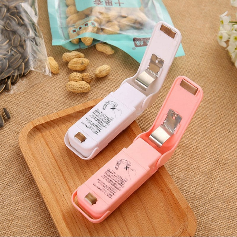 Abra a tampa para pré-aquecer o item pressionando 5 segundos antes de usar, depois simplesmente deslize-a ao longo da borda de qualquer bolsa e ela estará hermeticamente fechada.