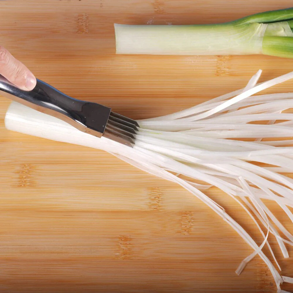 - ECONOMIA DE TEMPO: O Cortador Prático de Tiras tem várias lâminas que podem cortar em duas direções diferentes, facilitando a trituração de um monte de cebolinhas, por exemplo, em minutos.