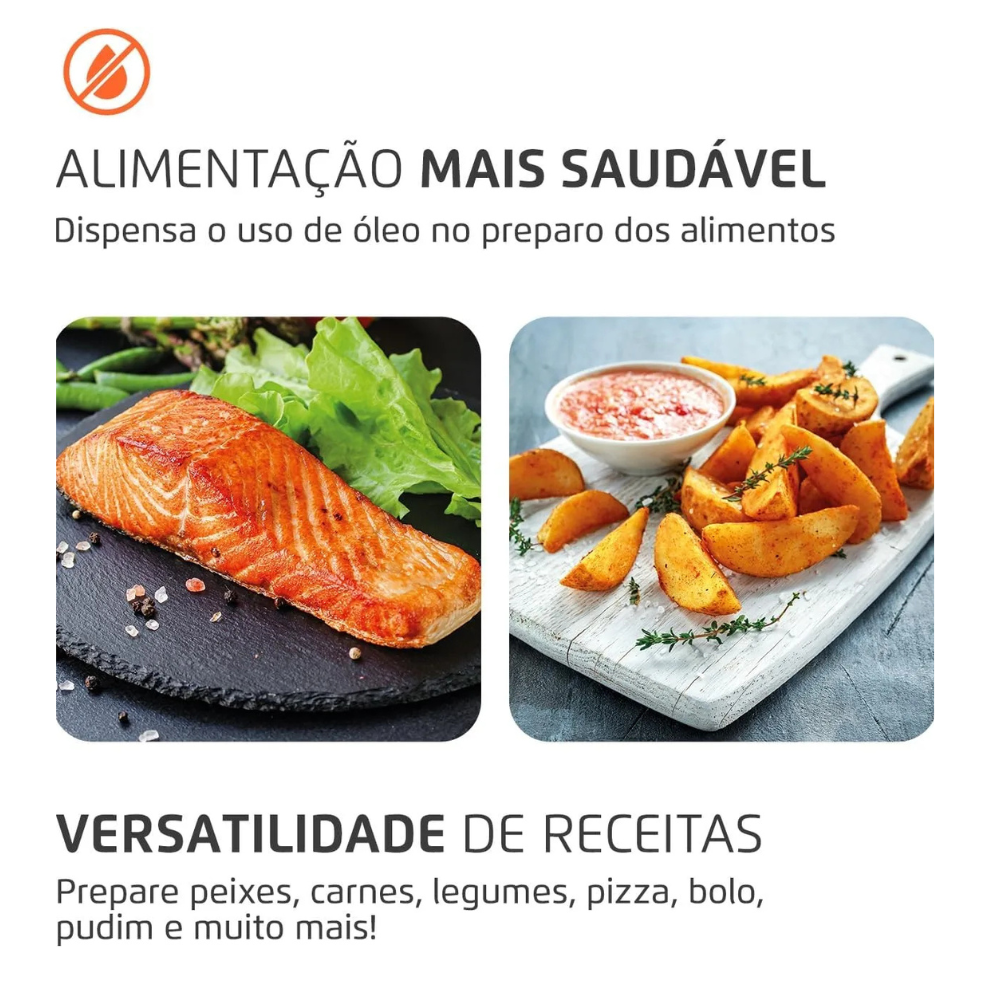 A Air Fryer Forno Mondial 12L é uma das melhores opções do mercado para quem busca capacidade, potência e versatilidade. Ela funciona como forno e air fryer ao mesmo tempo, economizando espaço e ampliando o número de receitas possíveis. É ideal para quem quer uma alimentação mais saudável e prática.